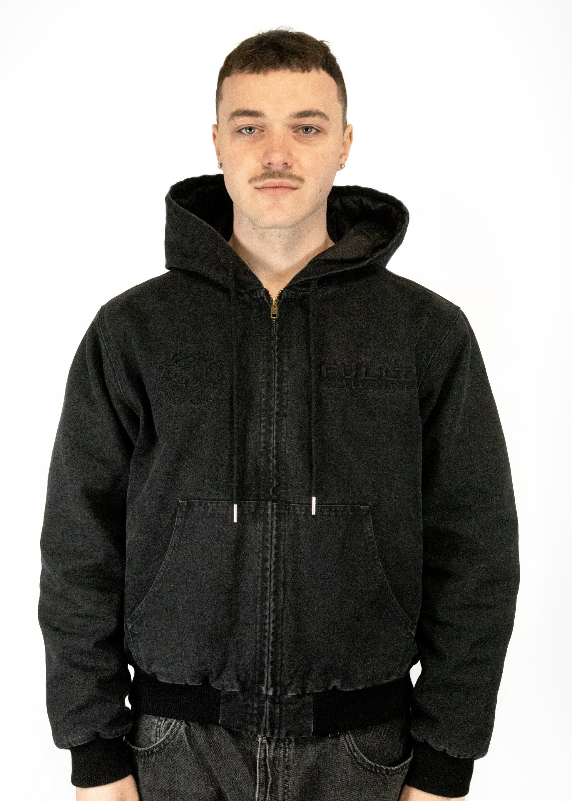 Jacket fits boxy, model is 1,80 cm and is wearing size L.